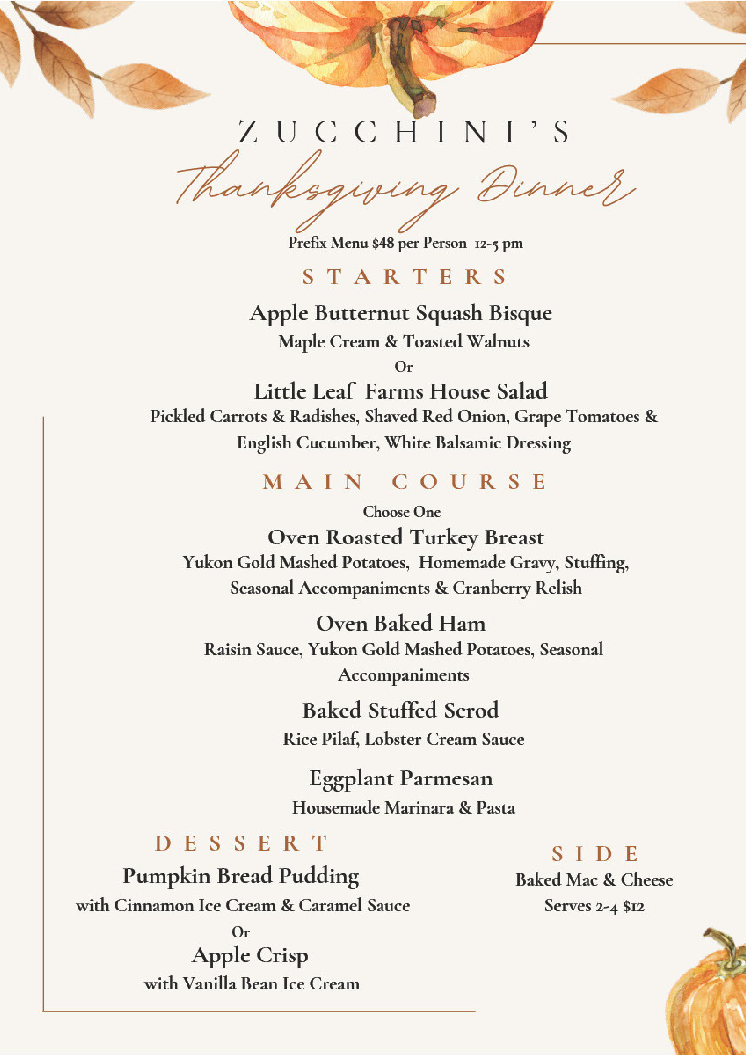 Thanksgiving Menu